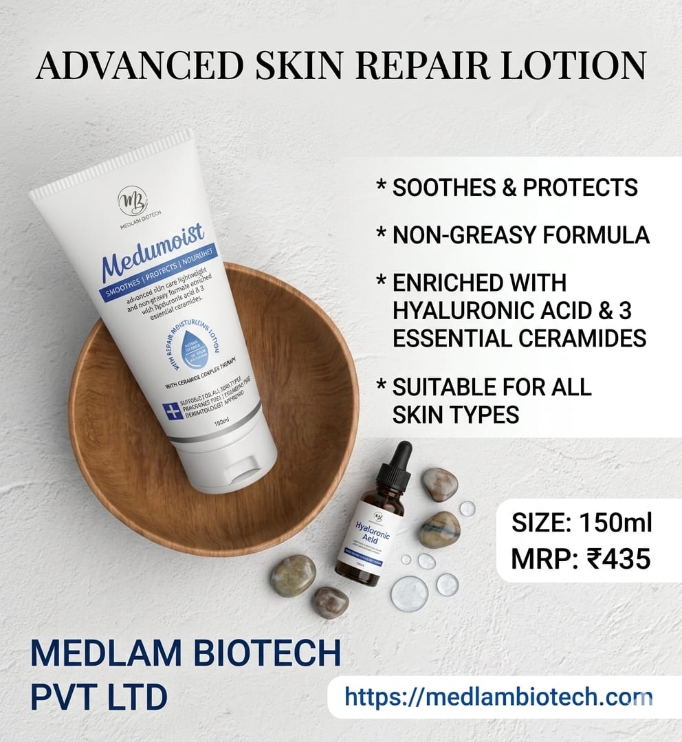 MEDUMOIST Repair Moisturizing Lotion is a skin-reviving formula designed to deliver intense hydration while strengthening your skin barrier. Enriched with advanced skincare actives and essential ceramides, it helps lock in moisture, repair dryness, and restore your skin’s natural glow.